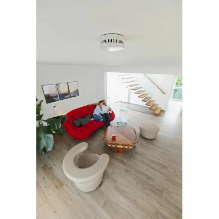 Funktionen: Stummschaltungsoption, Testknopf zur Funktionsüberprüfung, regelmäßiger Selbsttest mit automatischer Fehlermeldung, Alarmsignal bei zu schwacher Batterie