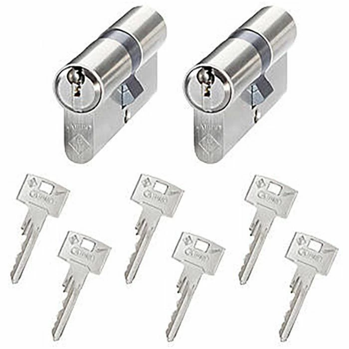 Lieferung: inkl. 2 Zylinder, 6 Schlüssel, Fixierschraube M5, Codekarte für Nachschlüssel