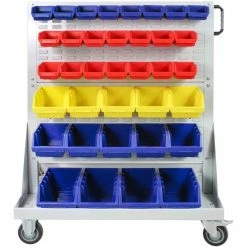 ADB Kleinteilemagazin Rollwagen 19755, Aus Metall, Fahrbar, 4 Schlitzplatten & 72 Sichtlagerkästen