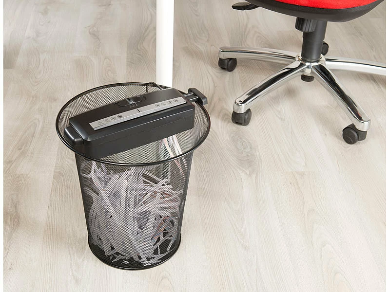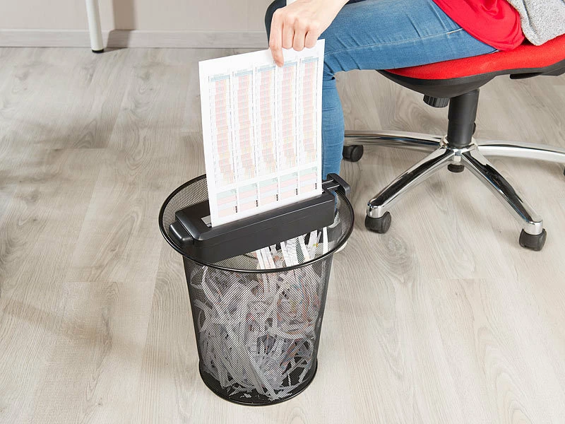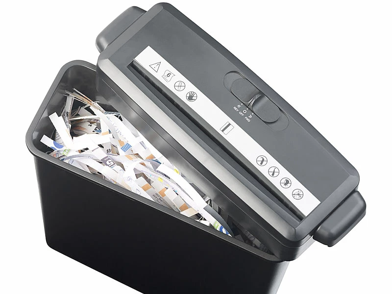 Gehen Sie auf Nummer sicher: Ob Rechnungen, Kontoauszüge oder persönliche Korrespondenz – der Aktenvernichter macht aus bis zu 6 Blatt Papier dünne Streifen. Und auch Ihre Bankkarten vernichtet er sicher. So haben Datendiebe keine Chance!