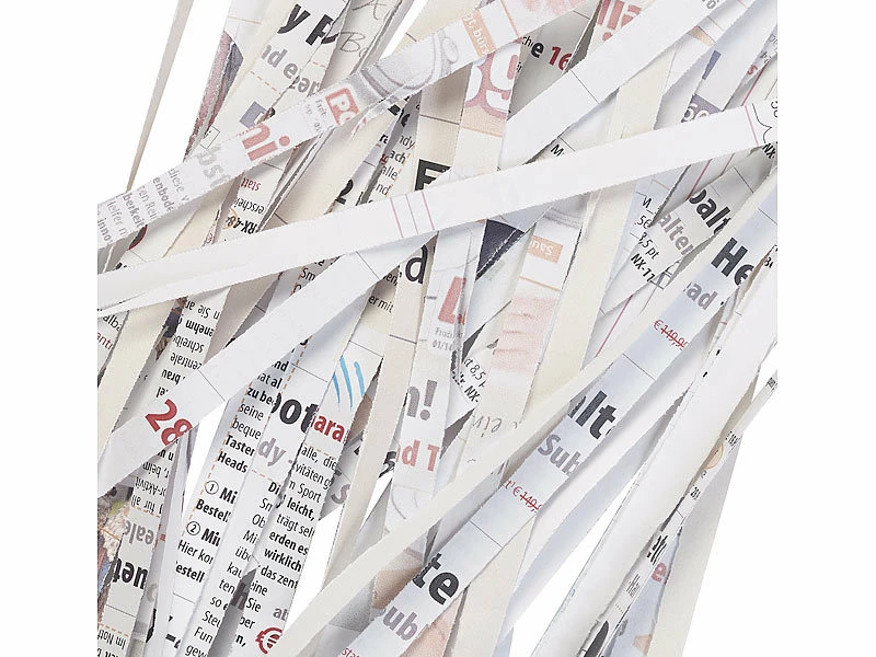 - Papier wird sicher vernichtet: Streifen-Schnitt mit ca. 8 mm Breite
