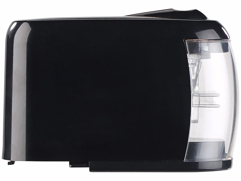 Findet überall Platz: Ihr batteriebetriebener Spitzer ist kabellos – damit stellen Sie ihn unabhängig von der Steckdose auf. Und am transparenten Auffangbehälter sehen Sie sofort, wann er voll ist.