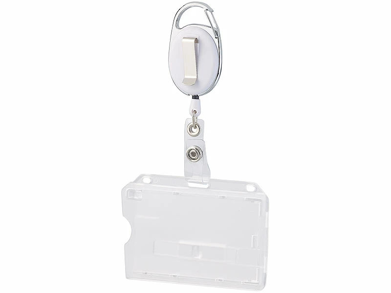 Ausweiskarten immer griffbereit: Befestigen Sie den praktischen Clip ganz einfach an Hose oder Hemd. So tragen Sie Ihre Karten sicher nah am Körper und haben sie jederzeit zur Hand. Ideal für Büro- und Dienstausweis sowie beim Bus- und Skifahren als Fahrkarten- oder Skipasshülle.