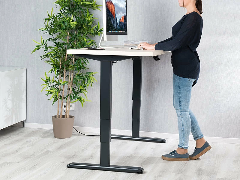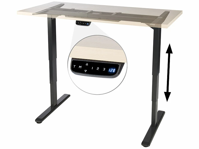 Stufenlos anpassbar: Fahren Sie Ihre Tischplatte jederzeit höher oder tiefer, sobald Ihnen danach ist. Die aktuellen Einstellungen lesen Sie auf der LCD-Anzeige ganz präzise ab.