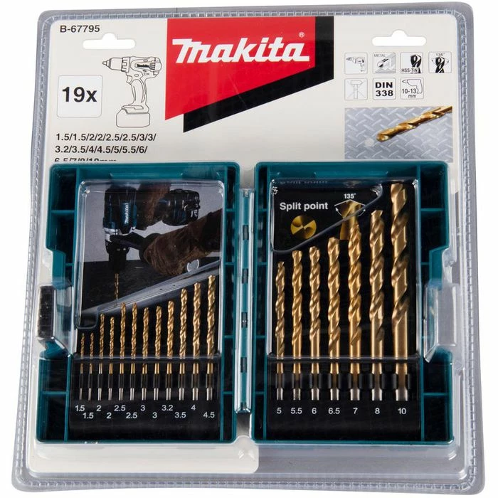 Lieferung: inkl. 19 Metallbohrern (2×1,5 mm, 2x2mm, 2×2,5 mm, 2×3 mm, 3,2mm, 3,5mm, 4mm, 4,5mm, 5mm, 5,5mm, 6mm, 6,5mm, 7mm, 8mm, 10mm) mit Kunststoffbox