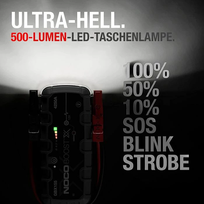 • Kompaktes, robustes und tragbares Lithium-Ionen-Starthilfegerät