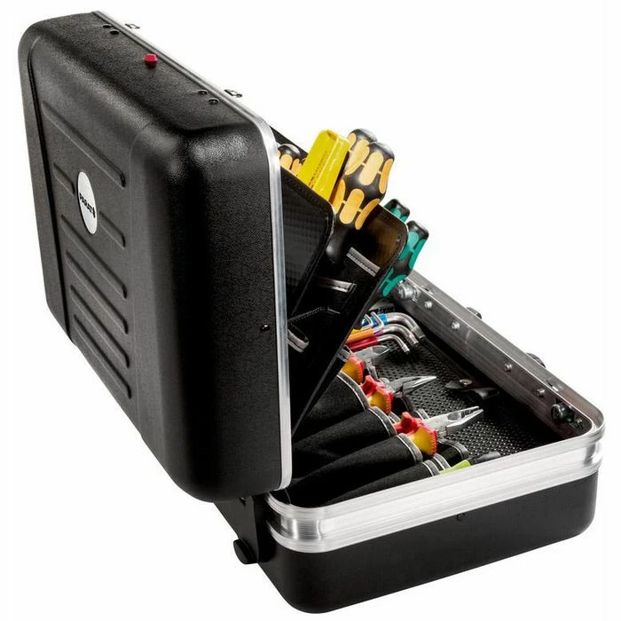 • Jederzeit direkt Zugriff dank arretierbarer Scharniere am Kofferdeckel