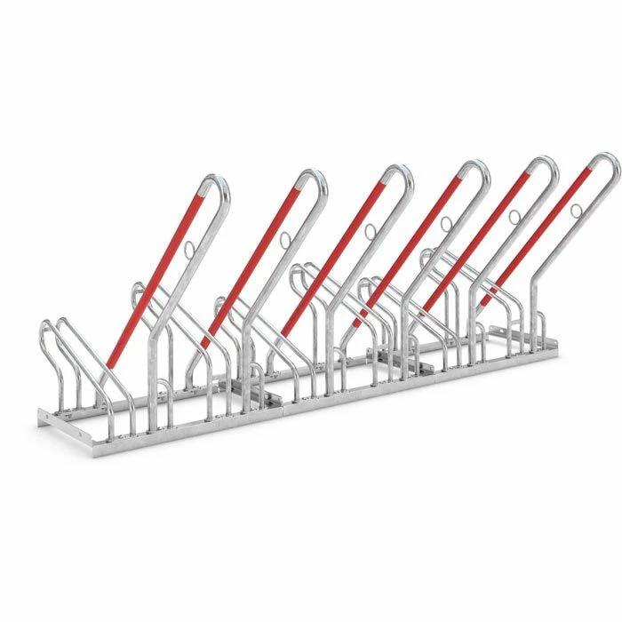 • Mit signalrotem Kunststoff ummantelte, schräge Anlehnbügel
