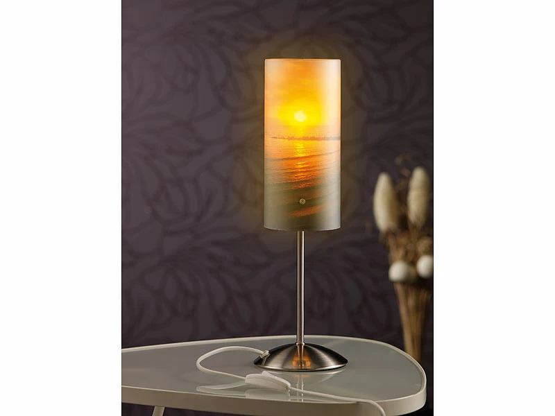 Egal, ob Sie ein Familienfoto, den herrlichen Sonnenuntergang oder ein selbstgemaltes, eingescanntes Bild auf den Lampenschirm drucken: Die lichtdurchlässige Folie sorgt in jedem Fall für stimmungsvolles Wohlfühl-Licht. Und wenn Sie Lust auf ein neues Motiv haben, liegen noch zwei weitere Folien bei, die ebenfalls bedruckt werden können.